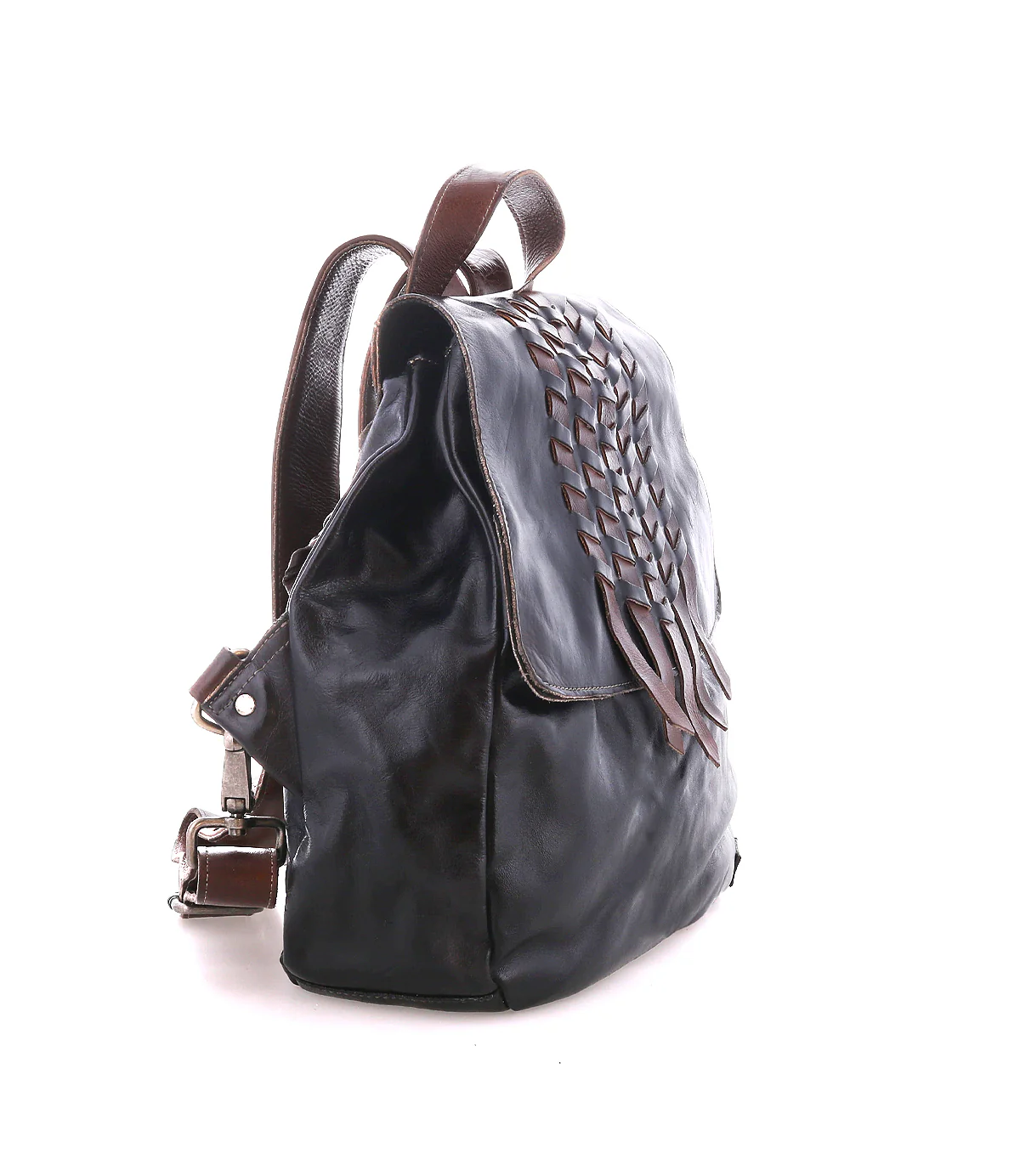 Where craftsmanship meets creativity—this backpack stands out with its striking handwoven detailing and soft, slouchy silhouette. Bold, woven fringe accents cascade down the front flap, giving it texture and movement, while wide, stitched shoulder straps ensure comfort and support. This backpack is a statement piece made to carry more than just the essentials.