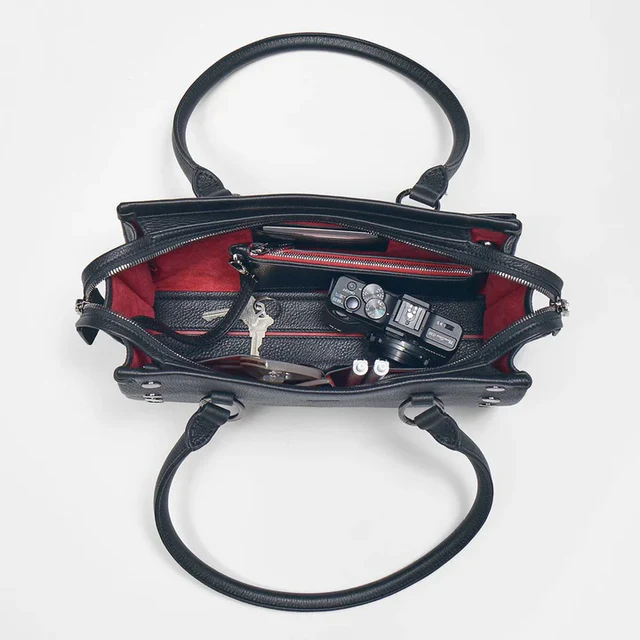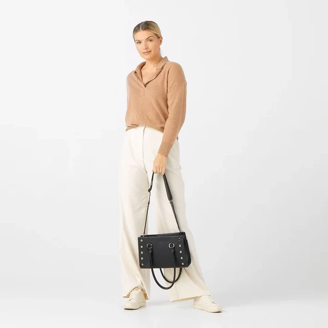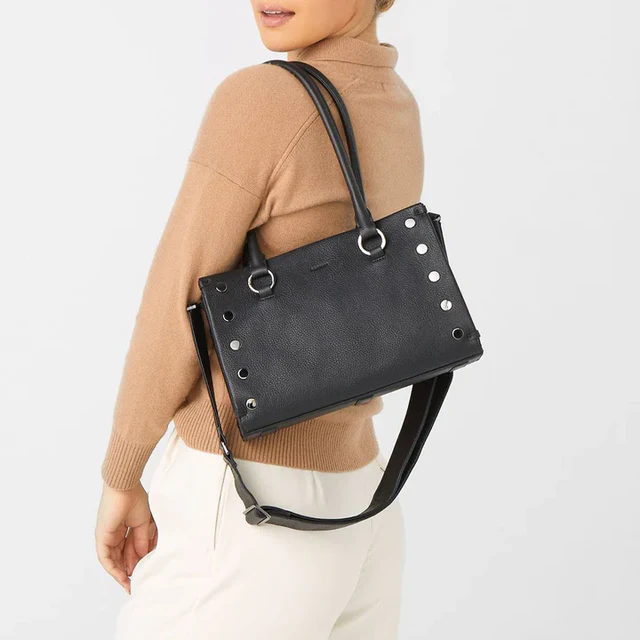 From the styling, to the details, to the construction, this bag is the embodiment of luxury. The top and side folded edges offer innovative construction that prevents unwanted seams and gives the bag a sleek look that is always clean, rounded, and elevated. The Allen’s handles are rounded, and they have a generous drop, making the bag effortless to carry as a tote. You’ll also find fused suede lining on the interior sides and interior pockets – a first for Hammitt. The finishing touch? A red reveal line on the bag’s leather interior base.