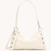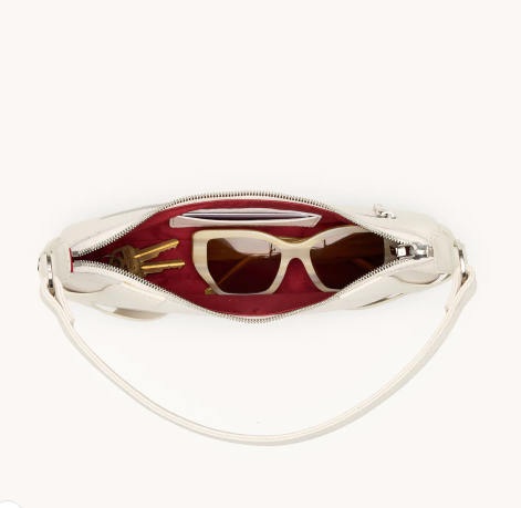 - Crafted with a bright, warm white pebble leather and a smooth, semi-veg tanned winter white leather panel caging treatment