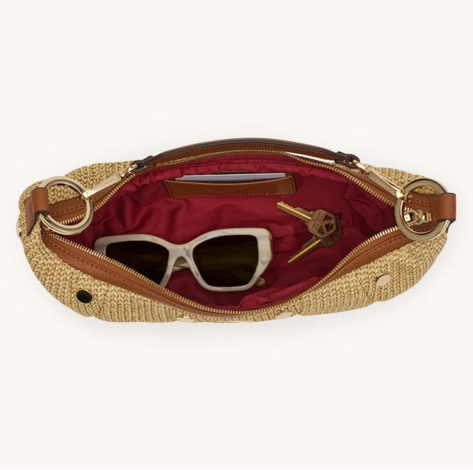 Introducing the Erica Sml, the perfect day-to-night croissant-style bag. Debuting our new chunky short strap, this bag can be worn as a shoulder bag or crossbody. With special leather paneling details adorned with our iconic riveted hardware, which adds a playful element to the bag, Erica is soon to be your new everyday favorite!