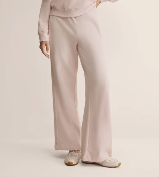 Easygoing with a twist. These cotton French terry wide-legs feature a comfy drawstring waist and delicate crochet trim at the sides for a soft-meets-feminine moment.